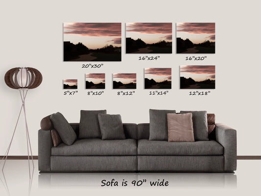 Canvas prints are created by stretching museum-grade cotton canvas across a wood frame and laminated with a protective gloss.